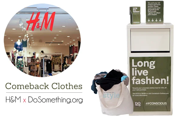 62 ülkede sahip olduğu 4.000’den fazla mağazası ile dünyadaki en çabuk büyüyen, hızlı moda perakendecilerinden biri olan H&M, geçen sene 24.5 milyar dolar değerinde t-shirt, pantolon, ceket ve elbise satmış. Aynı zamanda da 12bin ton kıyafeti geri almış. Markanın oldukça gösterişli ve ünlülerle dolu olan kampanya videosunda da söylediği gibi « Moda dünyasında kıyafetlerinizi geri dönüştürmekten başka kural yok! »